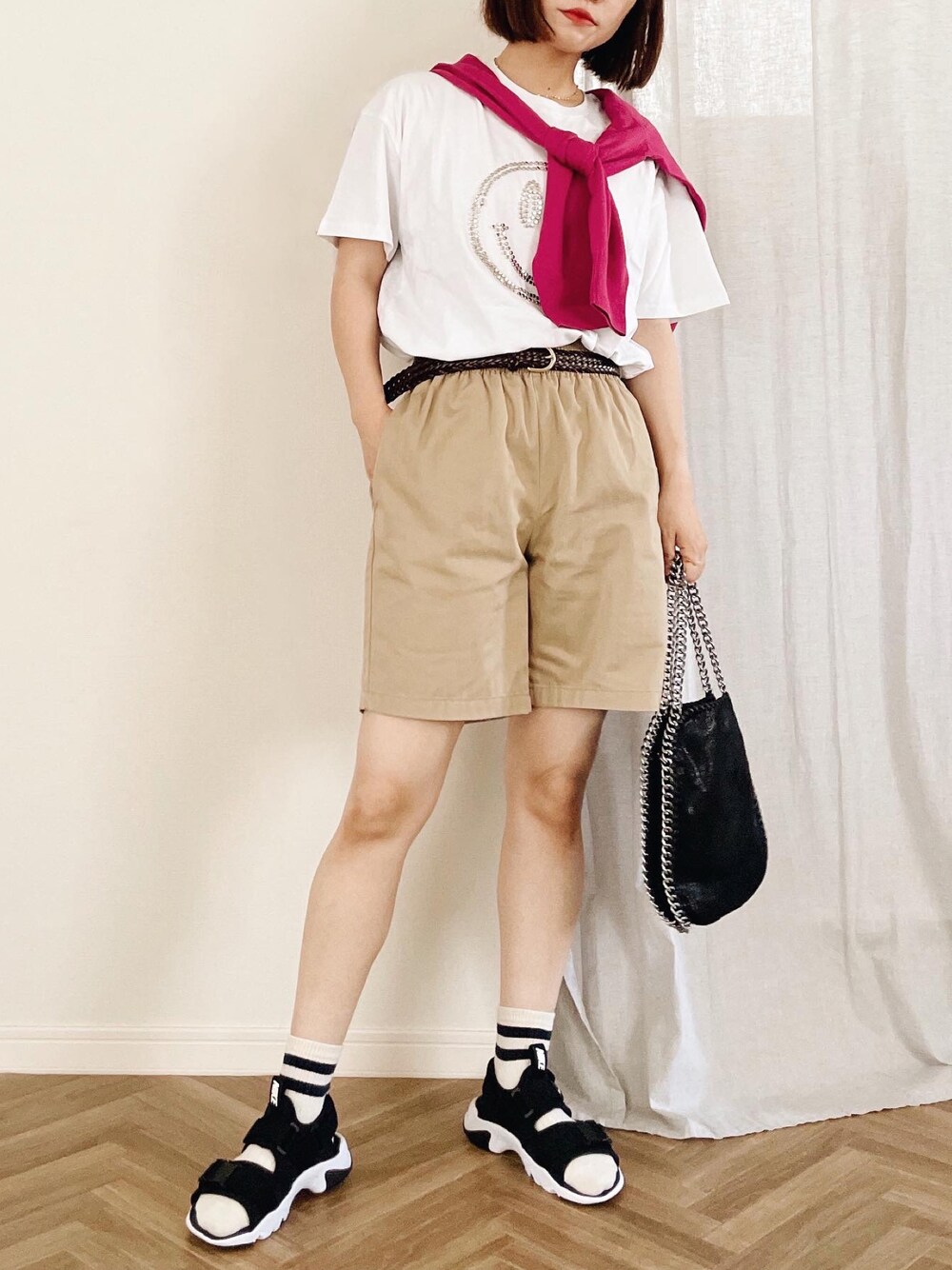 ひぃちゃんのTシャツ/カットソー「ニコちゃんスタッズTEE」を使ったコーディネート
