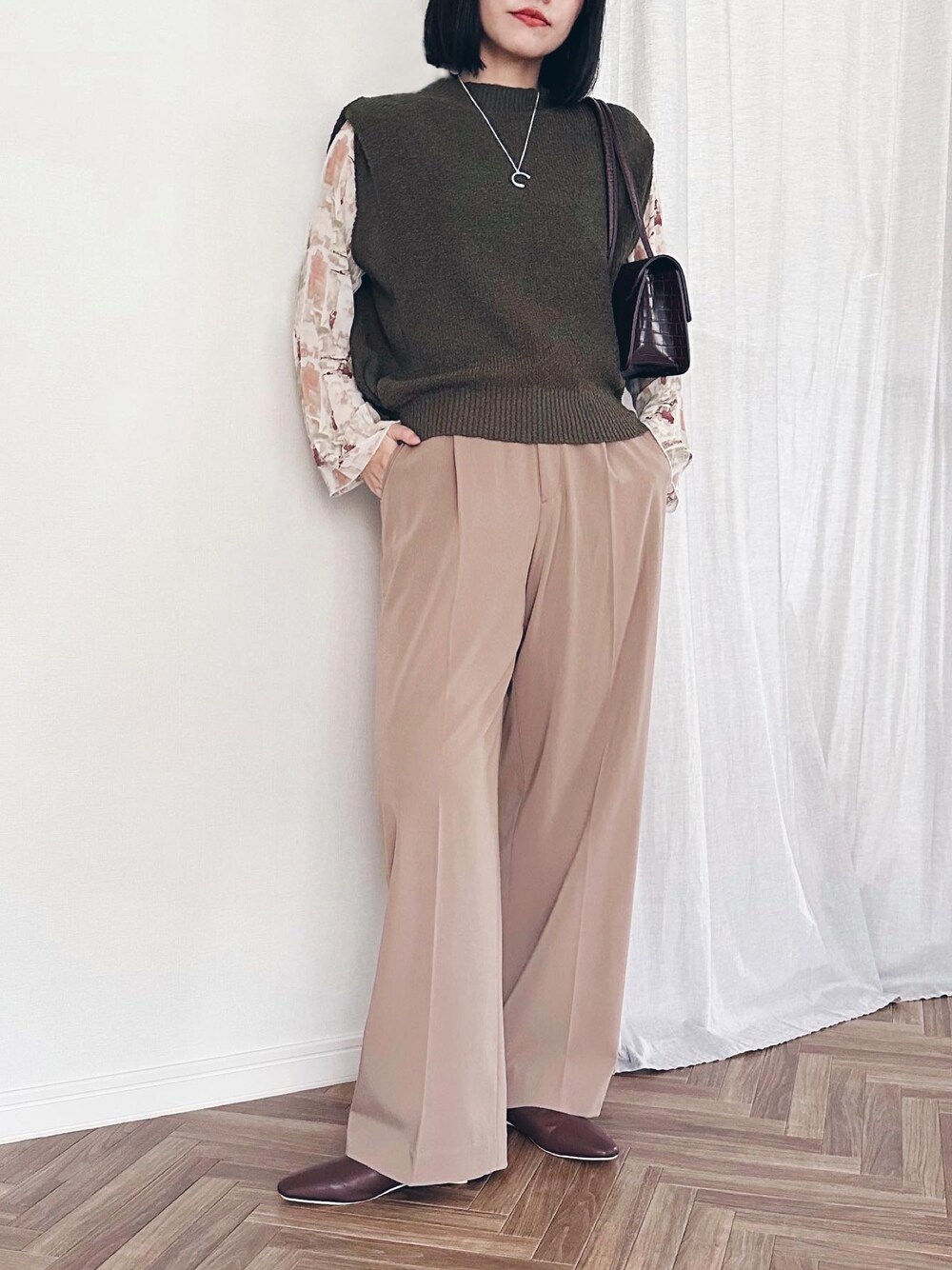 ひぃちゃんのベスト「サイドデザインハイネックニットベスト」を使ったコーディネート