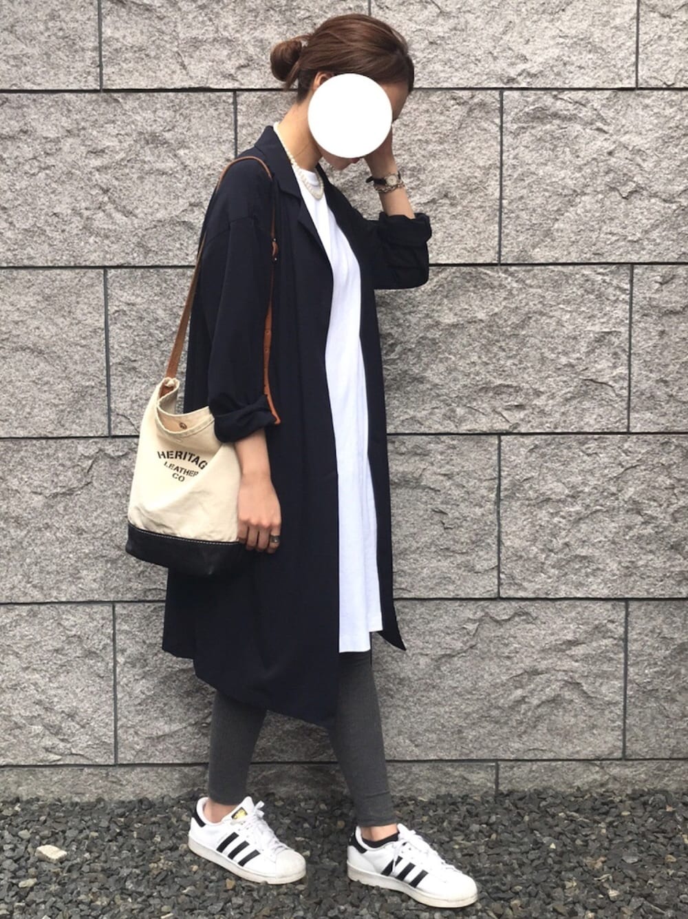 ダークグレーのリブレギンスは 何にでも合う気がする。 ライトグレーだとモモヒキと言われがちだし やっぱりダークグレーだと思う。