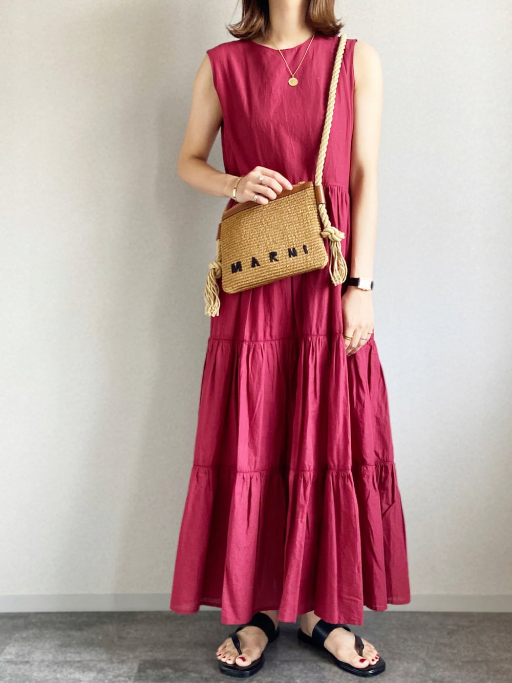 m___のワンピース「【WEB限定】ティアードピコワンピース」を使ったコーディネート