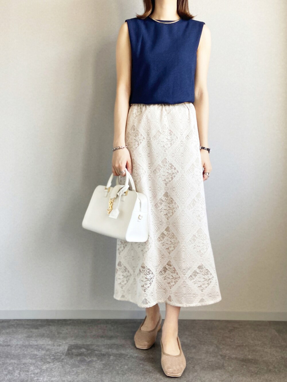 m___のスカート「パネルレースAラインスカート」を使ったコーディネート