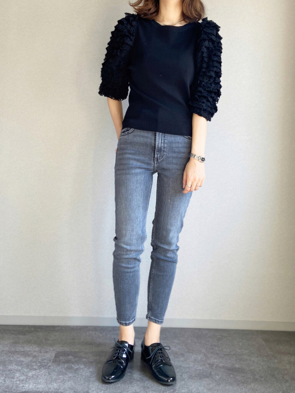 いいねやフォローありがとうございます😊 トップスの袖がとびきりに甘いので デニムと靴で辛口に‼️ 食べ物も服も甘辛好きです( ͡° ͜ʖ ͡°)💕 置き画やモダンインテリアなども載せています! Instagram ▶︎ptcooo89
