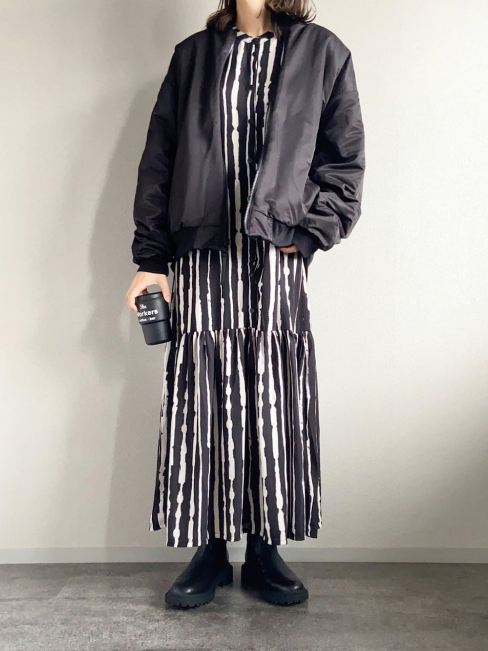 お気に入りやフォローありがとうございます🙇♀️ 甘めのワンピースにMA-1とゴツめのブーツを合わせて メンズライクにしてみました🍁🌰 冬はコートやマフラーで中の服が見えにくくなりますが、 秋は冬を先取った素材を楽しんだり程よく肌見せできたり さりげなくコーデのポイントをアピールできる楽しさがあるな〜なんて思います🌾(╹◡╹) 『お洒落の秋』楽しみましょう〜🤗💕 ※スピックアンドスパンのワンピースはロング丈のものを見つけられず、ショート丈でタグ付けさせて頂きました。
