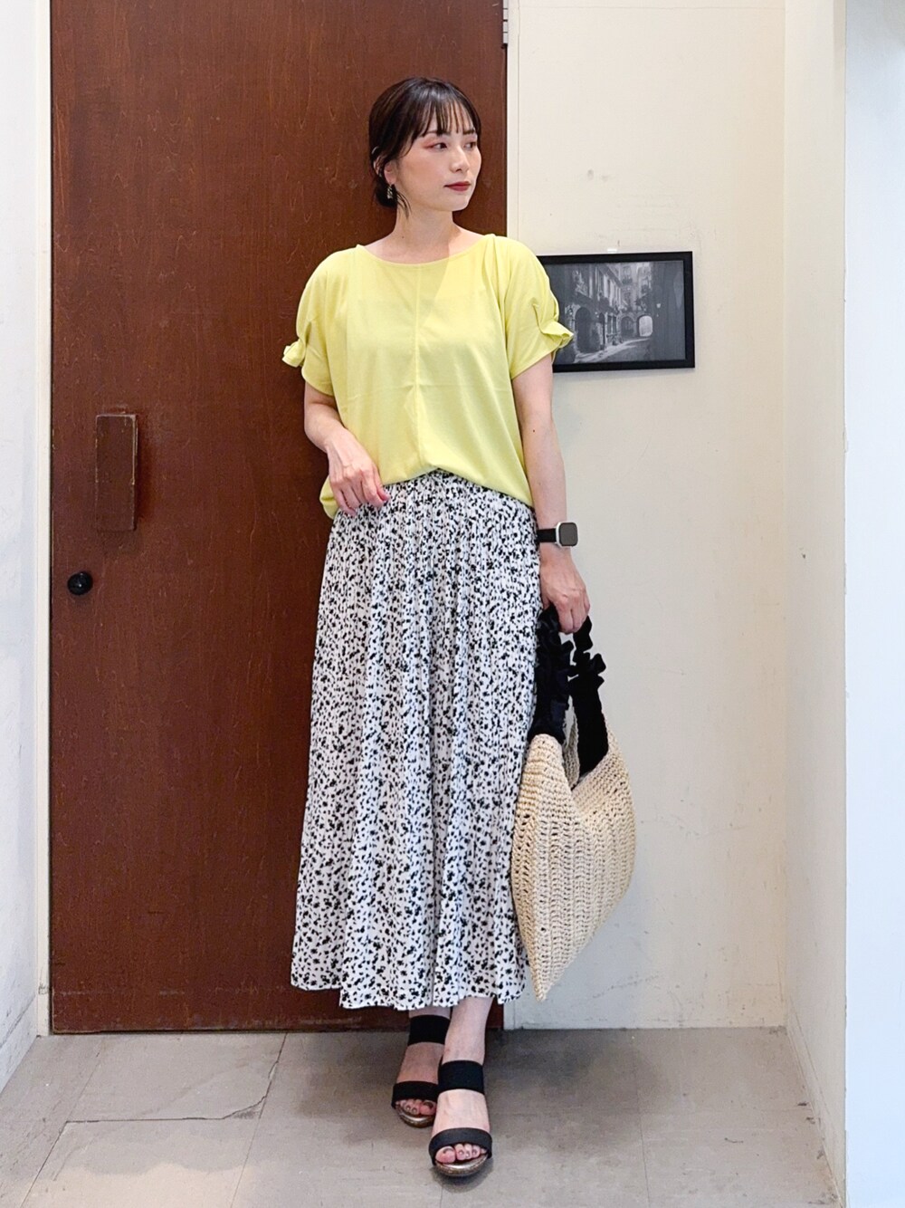 〖 素材感・着心地 〗 ⚫︎トップス⇢ 肌触りの良いデザインTシャツです。夏に嬉しいUVケア、接触冷感機能付きです。 ⚫︎ボトムス⇢ 広がりすぎないフレア感が上品なサテンプリーツスカートです。裾にかけてプリーツが消えるデザインで、柔らかく軽やかな印象で穿いていただけます 〖 おすすめポイント 〗 カラー違いで揃えたくなるお得なプチプラトップス♪ タック袖がほど良いアクセントになった、合わせやすいデザインも◎ 〖 スタイリングポイント 〗 パッと映えるイエローのトップスに、上品見えするプリーツスカートを合わせた大人フェミニンコーデです。