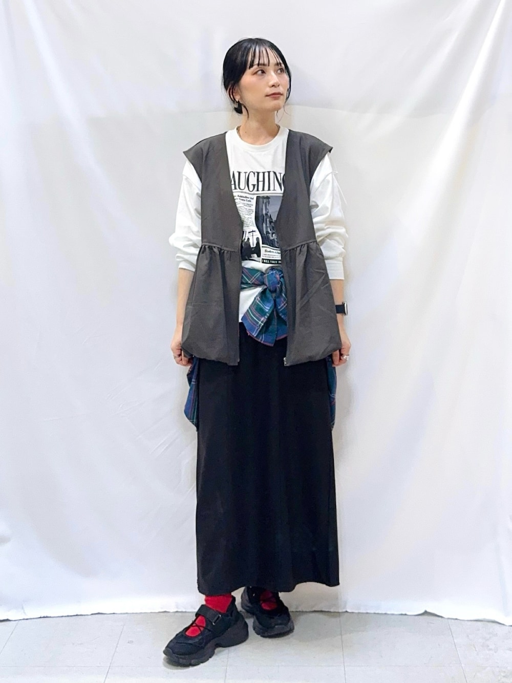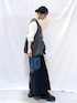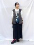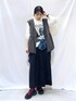 〖 サイズ感 〗 164cm/骨格ウェーブ トップスFサイズ、その他Lサイズ着用です。 〖 素材感・着心地 〗 ⚫︎ジレ⇢ 軽やかでさらっとした素材で、季節の変わり目のレイヤードコーデに重宝します。 ⚫︎トップス⇢ 柔らかなカットソー素材のロンTです。ゆとりのあるシルエットでリラクシーな着心地です。 ⚫︎シャツ⇢ 季節の変わり目から取り入れやすい、厚すぎないほど良い生地感です。ソフトなタッチで肌あたりが良く、サラッと着られます。 ⚫︎ボトムス⇢ ソフトな裏毛素材ながら、チンツ加工による艶感でレザーのような雰囲気を演出しています。 〖 おすすめポイント 〗 ジレは裾のバルーンシルエットがポイントで、コーデにプラスするだけでこなれ感がアップします♪ 〖 スタイリングポイント 〗 プリントロンT×レザー調ナロースカートにバルーンシルエットが可愛いジレをプラス。更にチェックシャツを腰巻きしてこなれ感アップ◎ トレンド感は取り入れつつ、落ち着いた色味でまとめて、大人世代にマッチするカジュアルスタイルに仕上げました。 ※アクセサリーはスタッフ私物です。