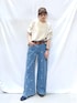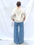 休日にぴったりな、ゆるトップス×ワイドデニムのラフな大人カジュアルコーデ。シンプルながら、デニムのフラワー刺繍がほど良いアクセントに♪