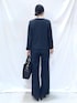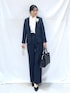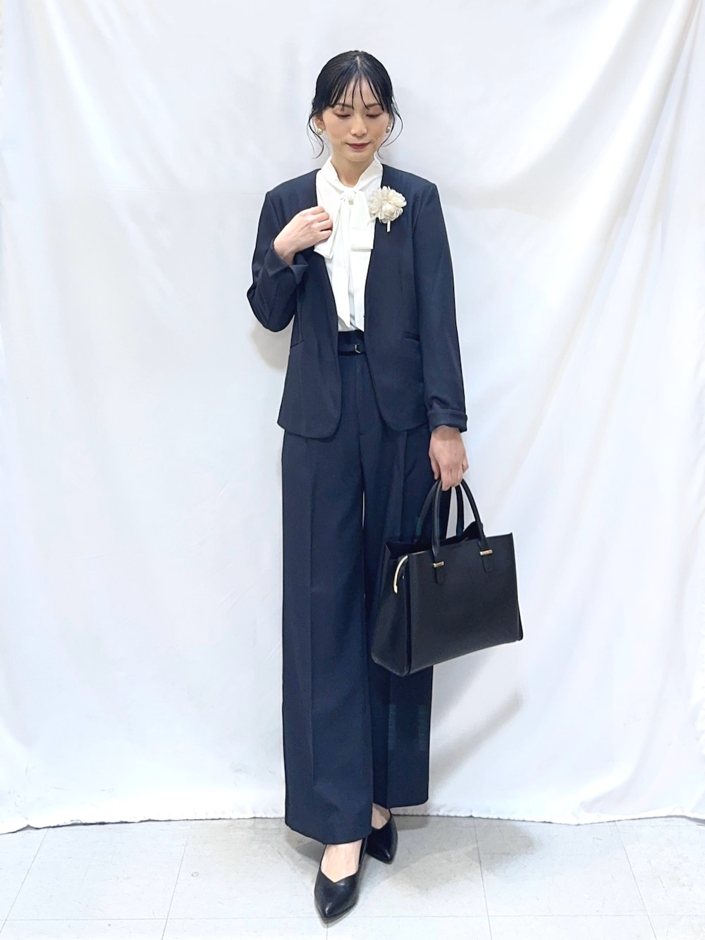 ネイビーでまとめたセレモニースタイルです。コサージュを外せば通勤やお仕事コーデにも◎