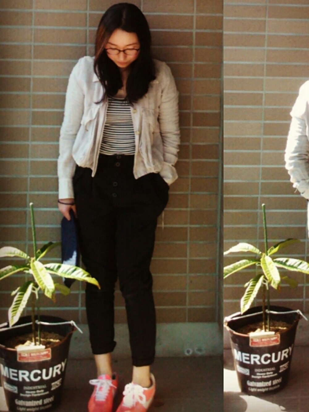 お気に入りライトアウター🌼🌼🌼 バックスタイルを紐で調節して色々な表情を出せるんです。 ずっと着ています。