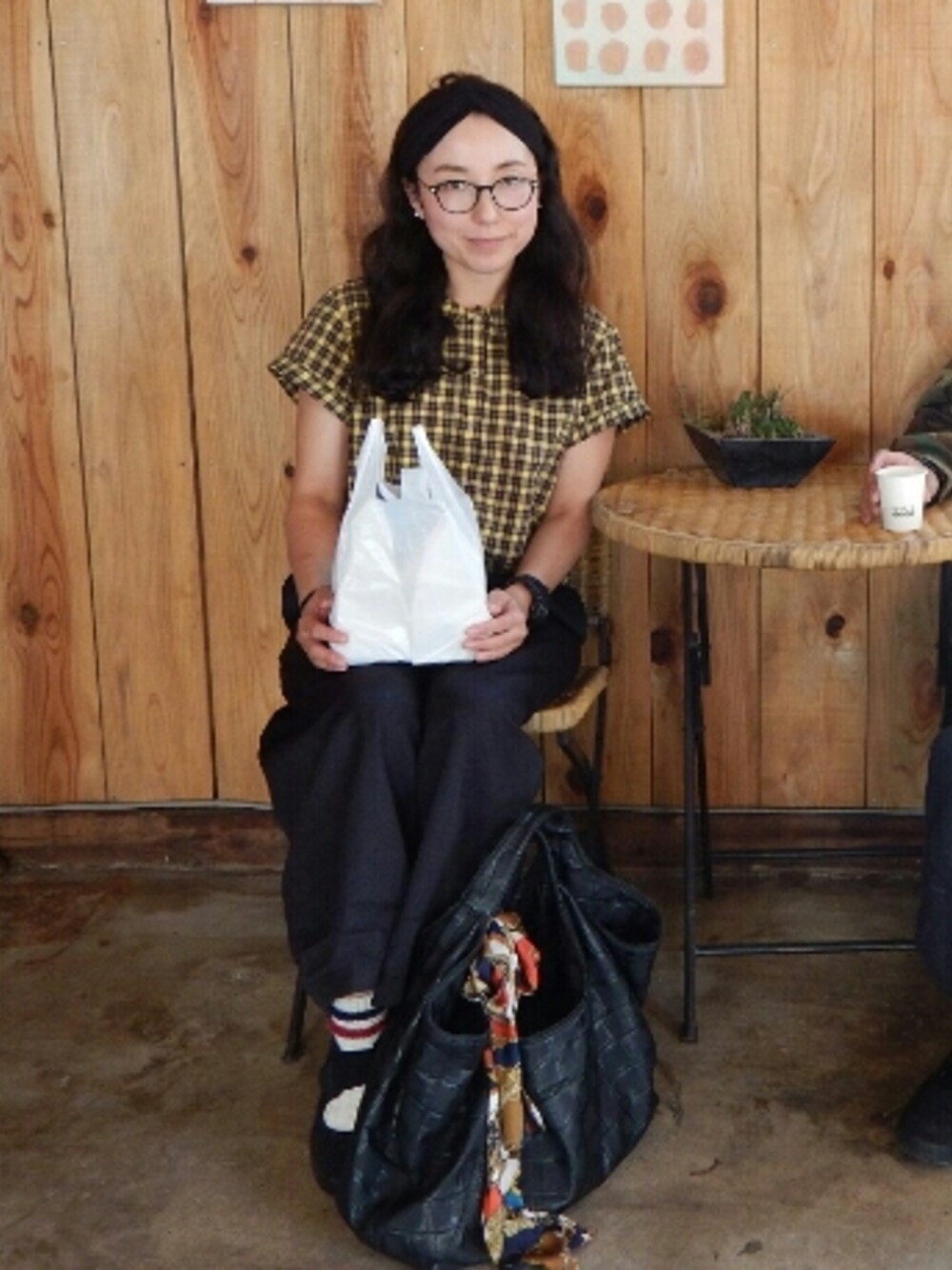 maaruにて!店主様に撮っていただいた写真😄✨お洒落で美味しいドーナツ屋さんです🍩🍴 いつも見てくださり、ありがとうございます🙏💓代り映えしないコーデですが、ロケーションがよいと雰囲気変わりますね~(●´ω`●)