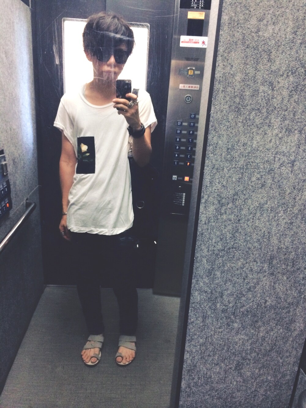 昨日。 夏はだいたいこんな格好です。 相変わらず鏡汚い。