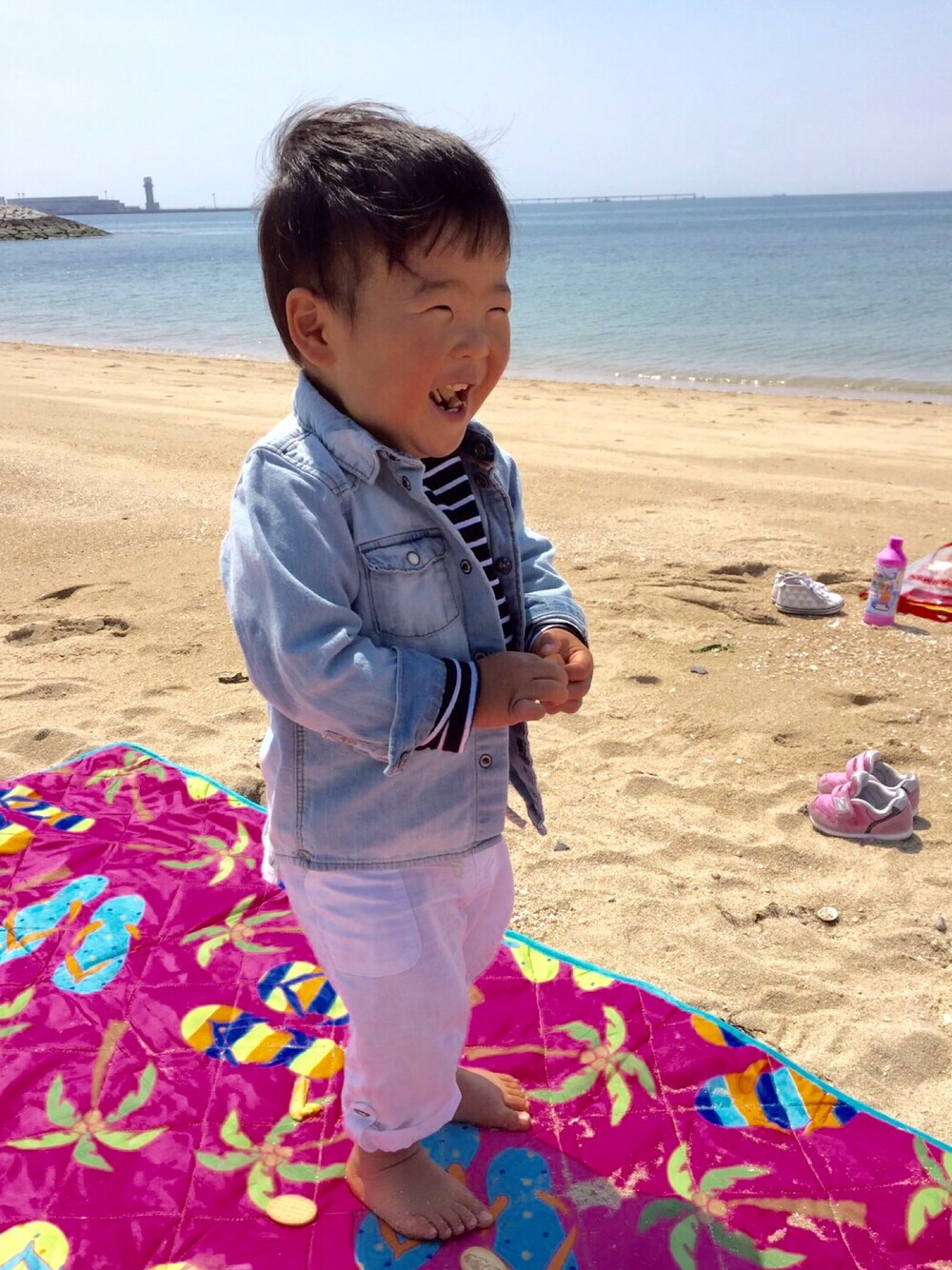 ママの写メはないけど、おそろコーデ❤︎ 海に友達とピクニック(*^◯^*)いい天気☆