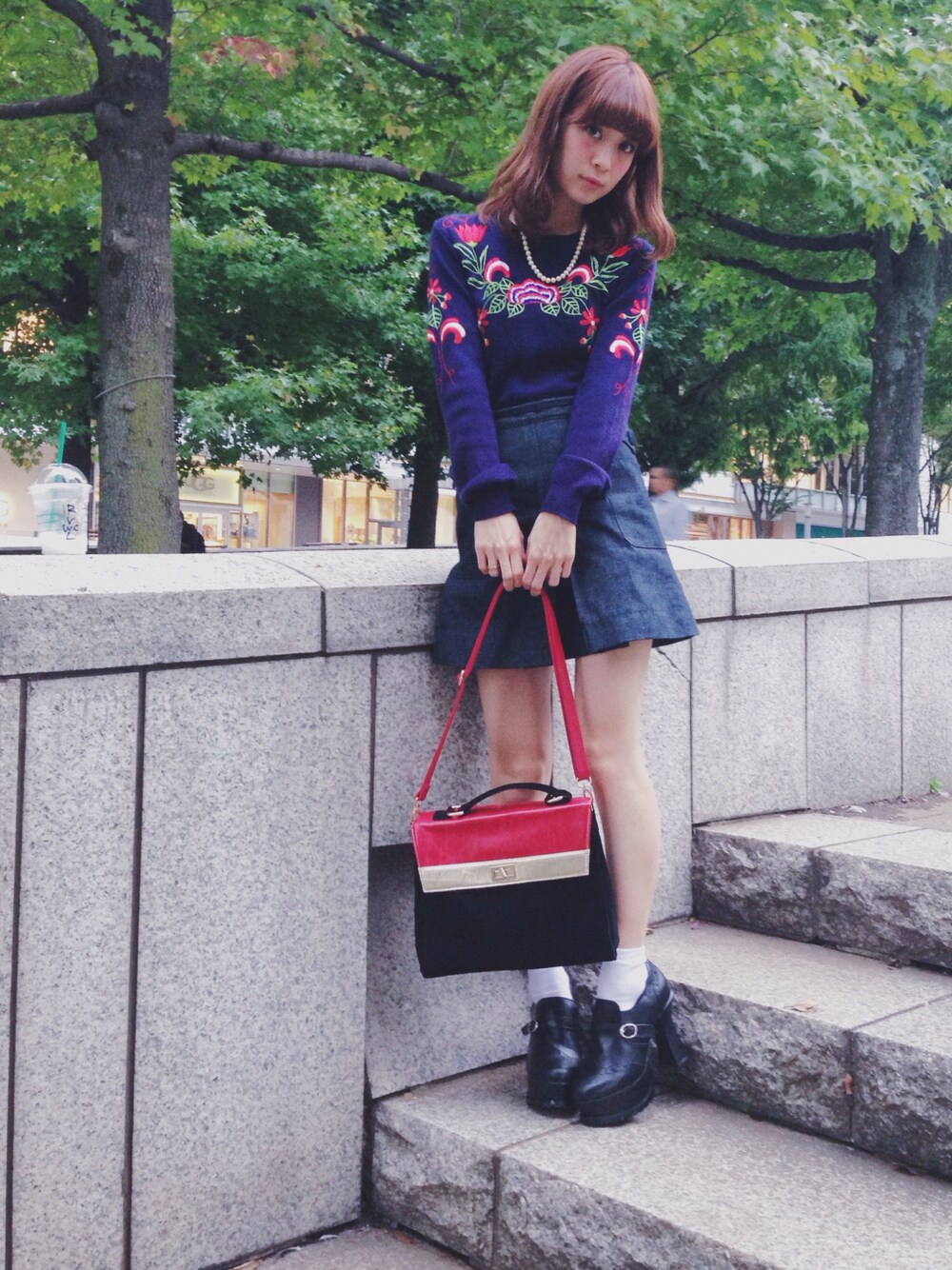 彼から誕生日にもらったhandpickedのバックに お気に入りのvintage knit♡ スカートーはCHARLESANASTASEの♡
