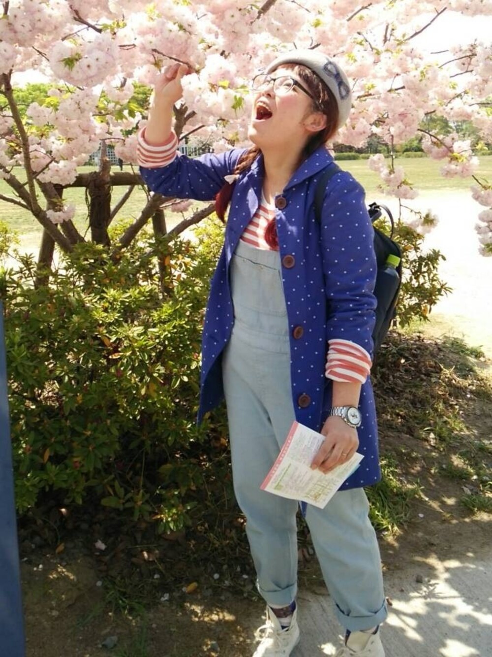 帽子:どっかの雑貨屋サンで一目惚れ♡ しましまカットソー:無印 サロペ:SM2 ロングコート:SM2 靴下:靴下屋 リュック:カンケンリュック 京都水族館行って来た〜♫ 桜も可愛く満開♡♡♡