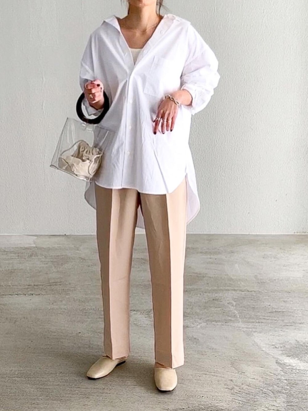 hitomiのスラックス「セミワイド カラースラックス ユニセックス(ジョーゼット/ウール混の2タイプ) je-101 chw869【ベーシックライン】」を使ったコーディネート