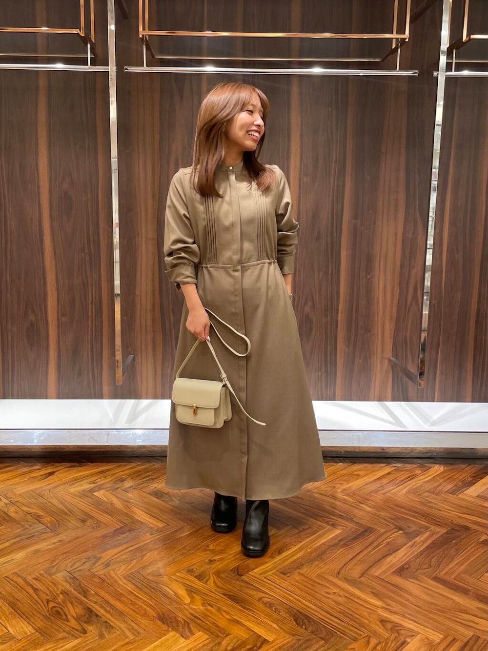 Hitomi(URBAN RESEARCH 渋谷ヒカリエShinQs)のワンピース「ピンタックストレートワンピース」を使ったコーディネート