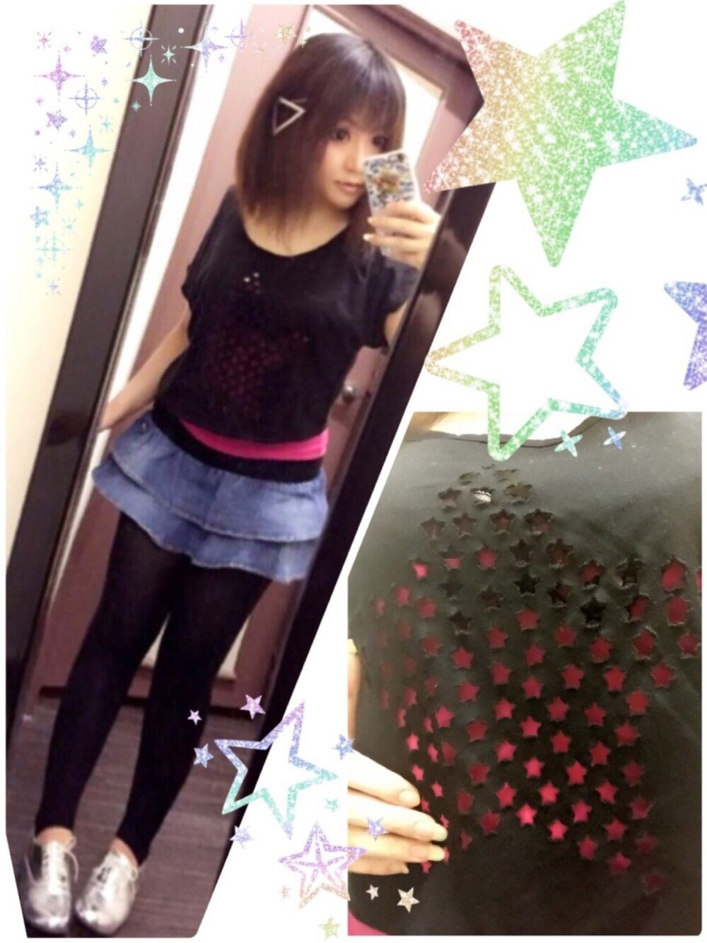 星型の穴が星型に空いててかわゆ*(❤︎●︎ᗜ●︎❤︎)* 下の服が透けるので、着るものによって印象が 変わりそうー( ˊᵕˋ* )
