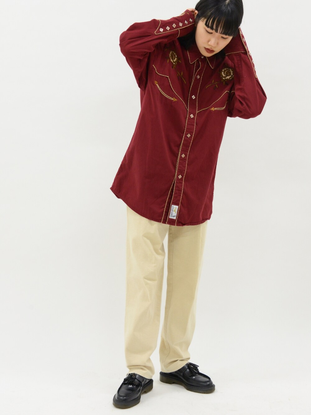【hitorie styling】 tops : vintage square snap button western shirt pants : design zip pocket straight pants