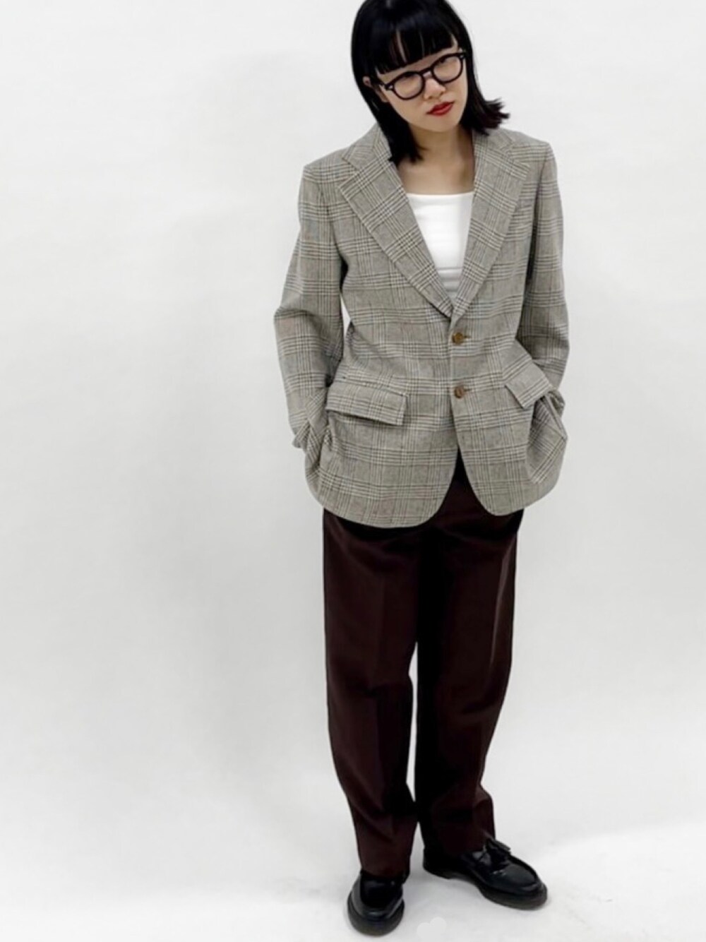 【hitorie styling】 jacket : Yves Saint Laurent check jacket pants : brown Simple slacks