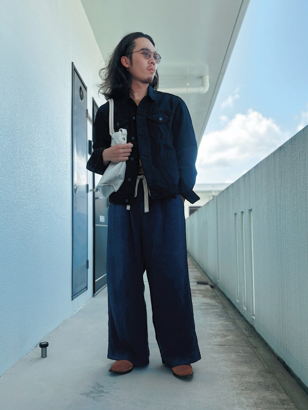 休日の昼過ぎに起きて適当に着替えてスーパーに行く... そんなラフコーデです ひとつひとつのアイテムがしっかりしているので ラフながらも存在感があるコーデに