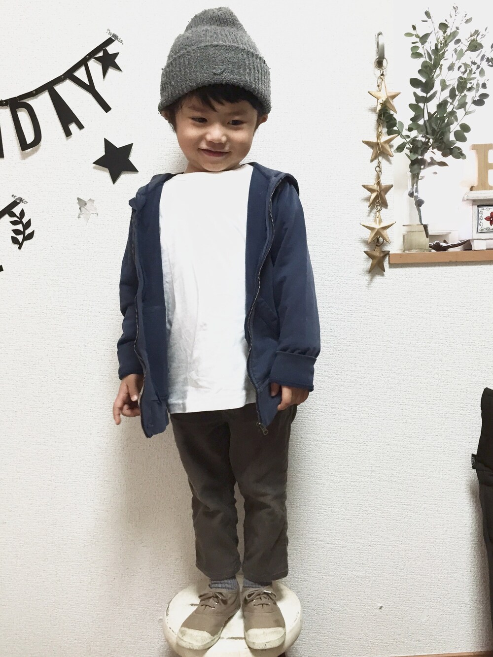 古着屋さんで見つけたコーデュロイのパンツ、丈がちょーどいい!! いつも通りの地味さです。
