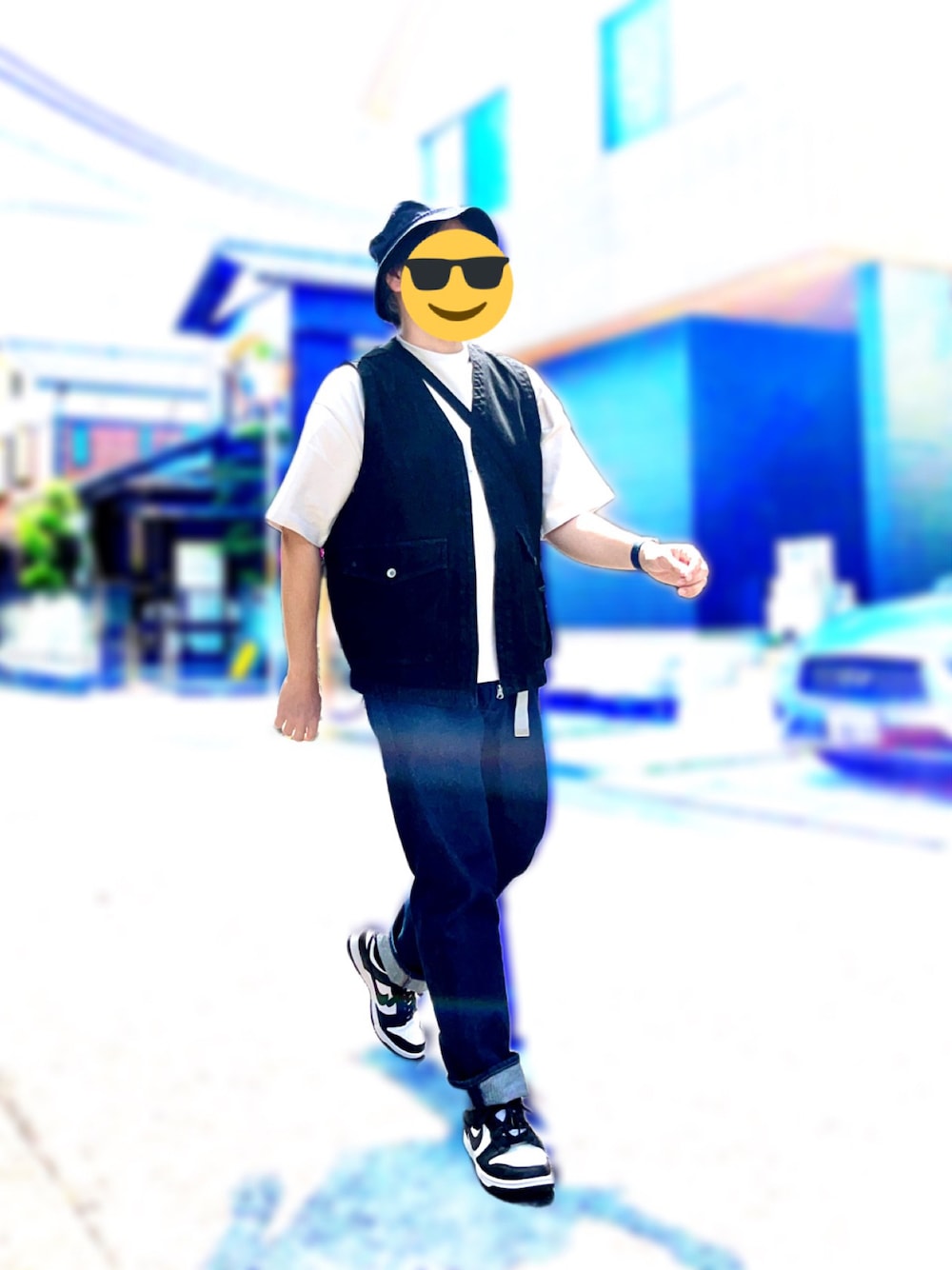 NIKEパンダDUNKに合わせて、デニム素材コーデ! パンダは印象が強いので、黒白要素は一箇所ぐらいにした方がパンダ🐼マンにならずに済む気がする。
