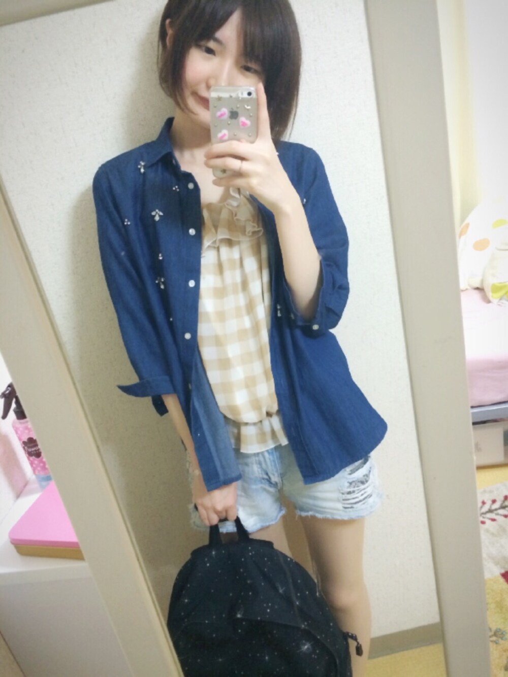 なまらお久しぶりの投稿です! わたしは元気です(笑) コーディネートのポイントは シャツとショートパンツを デニムにしてみたことです(^o^)/ 今年の夏はデニムアイテムを 沢山取り入れたいです!