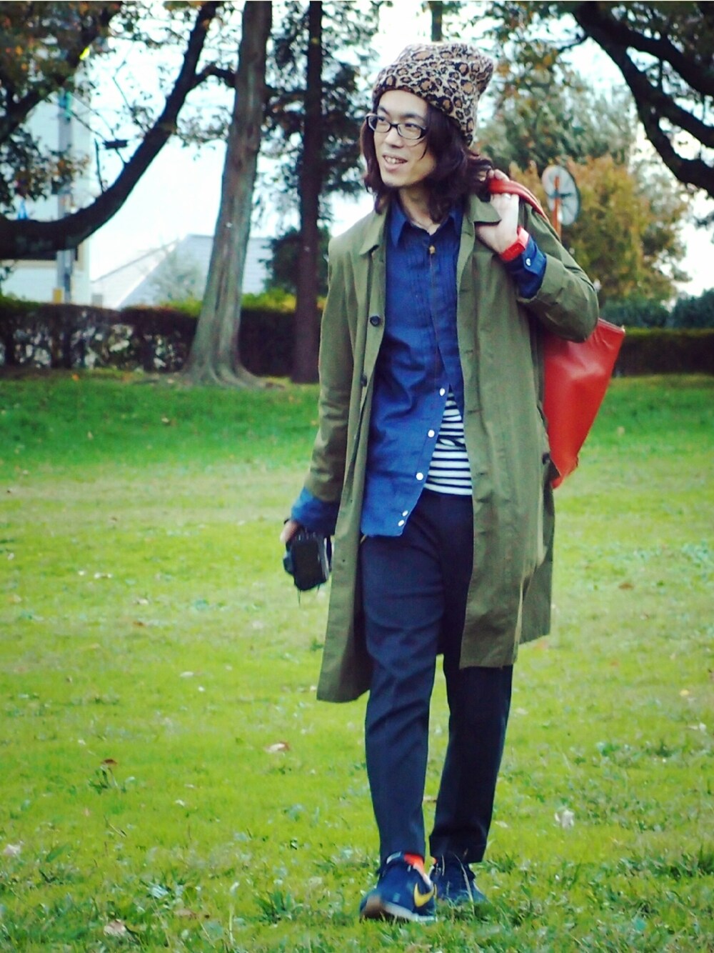 ネイビー系コーディネートはコモノ使いで立体感をつけて楽しんでいます。