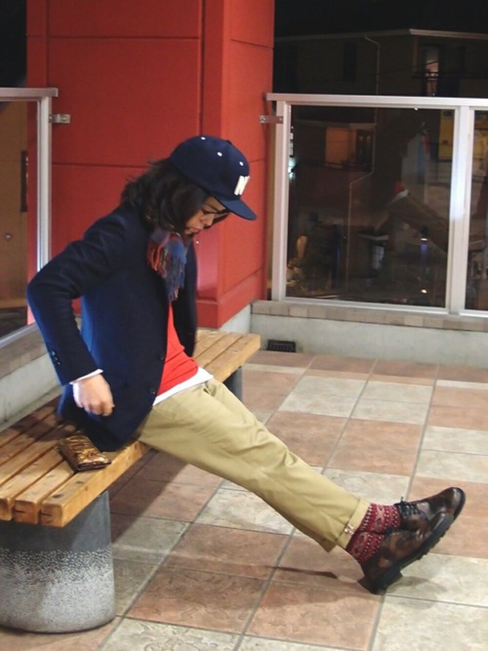 コンサバなネイビーウールジャケットは、色さし+柄さしでカジュアルダウンが『気分』です。