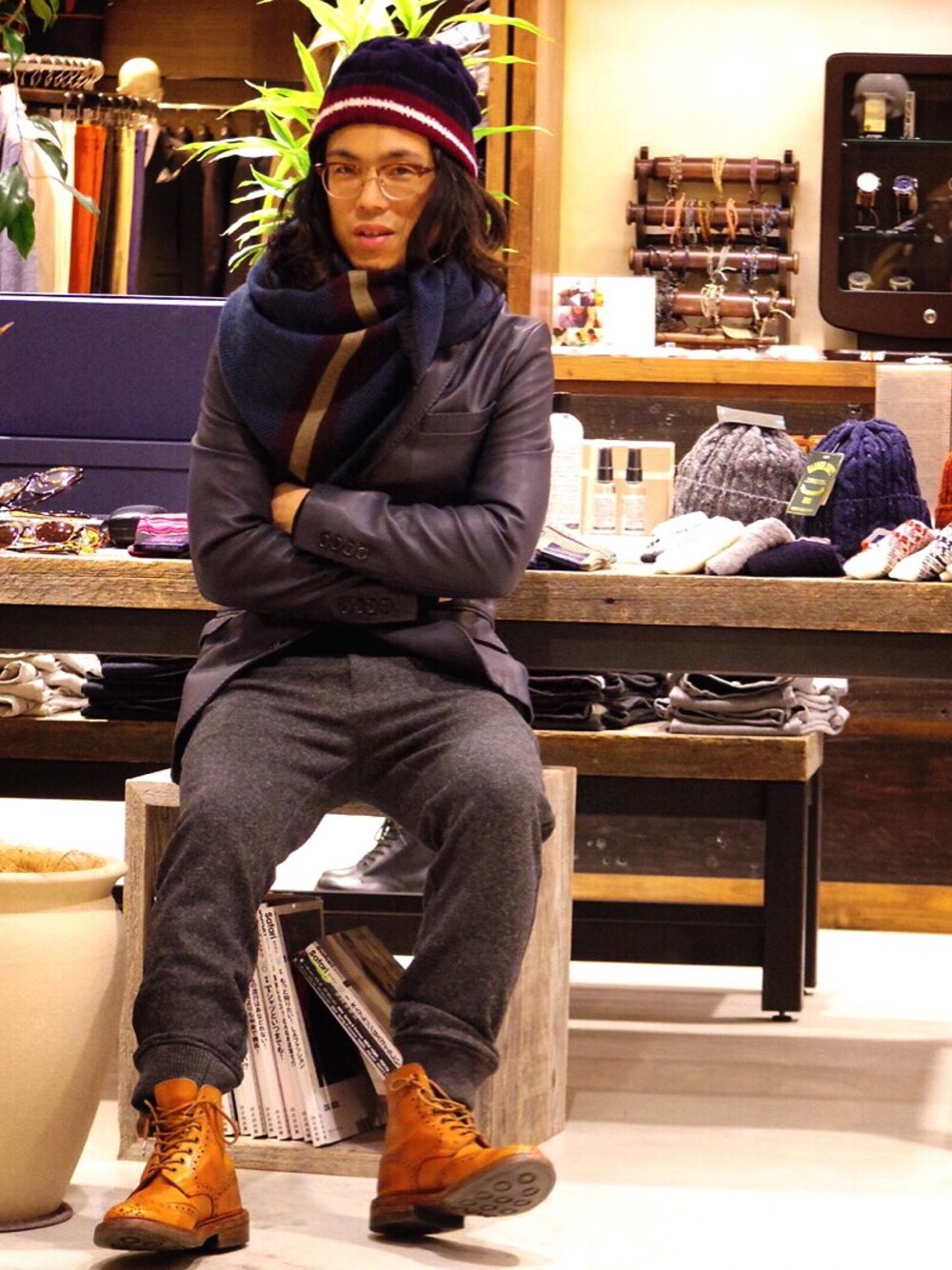 リブパン×レザージャケットのミックスコーデ。 全く見えませんが、実はインナーに黒のタートルを着ております。。