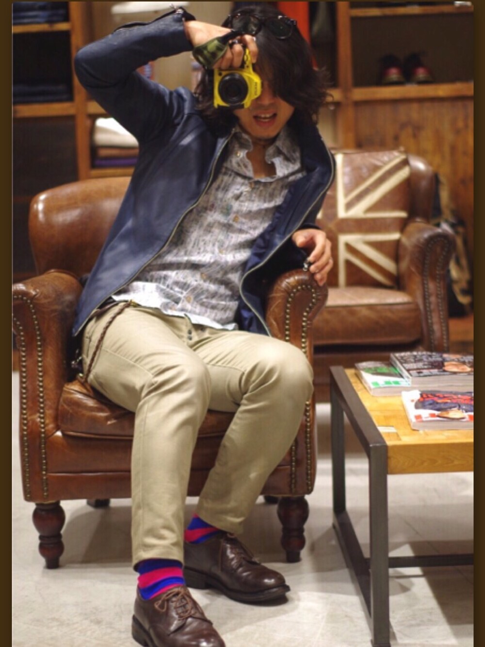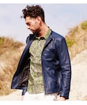 着るだけで “抜群の存在感” を放つカラーレザージャケット!シックな柄シャツと合わせ、上品にクラスアップを狙いました。