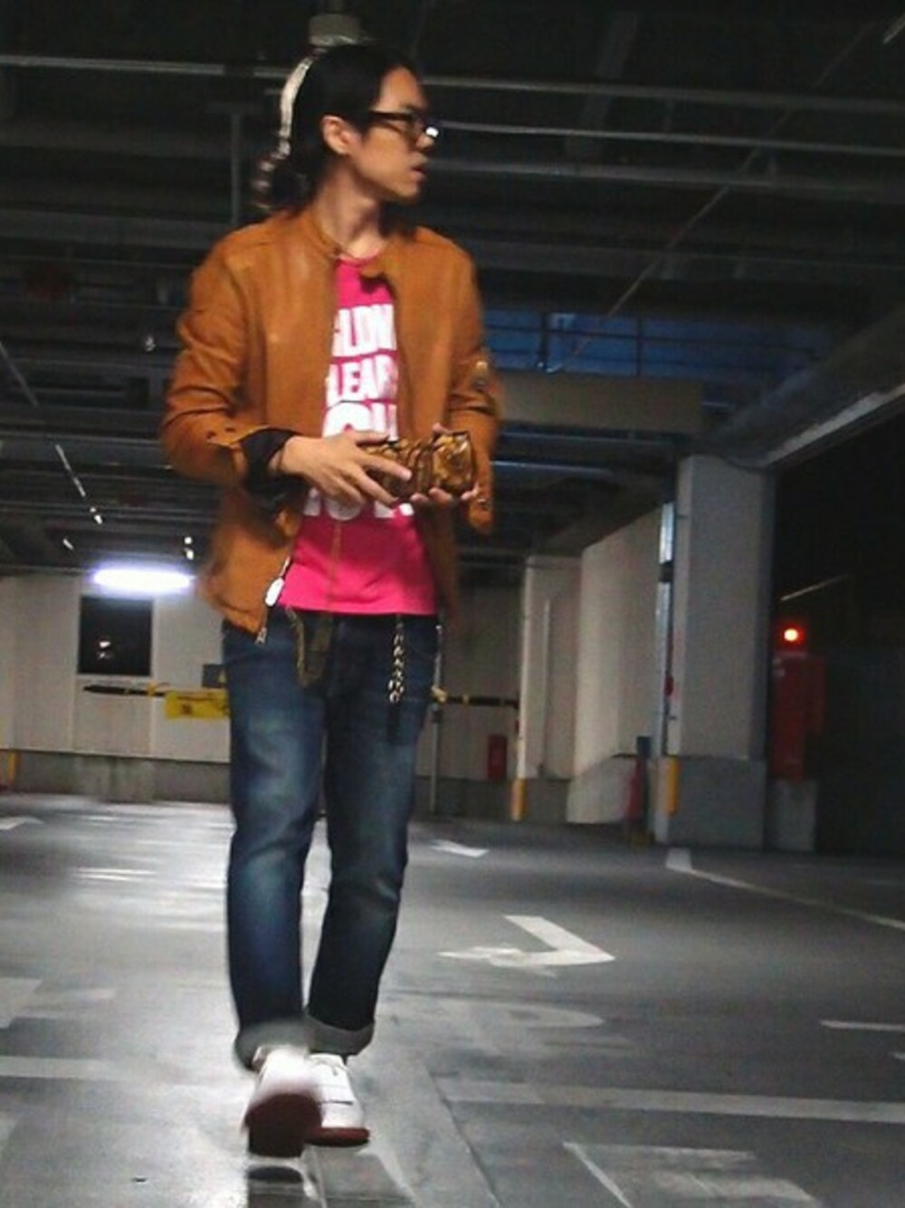 タケダヒロタカ★★★のライダースジャケット「GOAT OVERDYE SINGLE RIDERS / レザー MA-1 ブルゾン」を使ったコーディネート