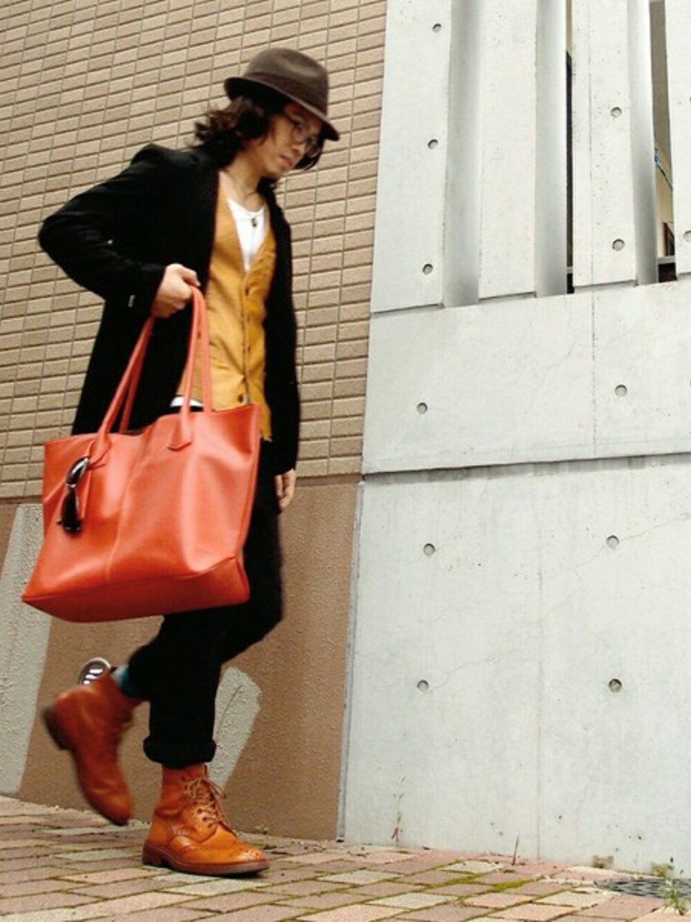 ジャケットとパンツをダークトーンで揃え、きちんとした印象が漂うようにスタイリングしました。