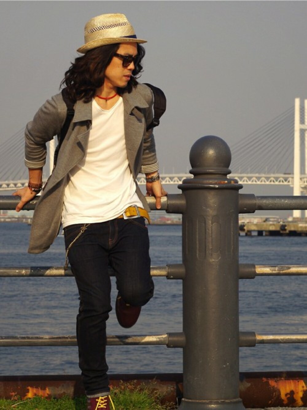 タケダヒロタカ★★★のTシャツ/カットソー「LEATHER DYED V NECK」を使ったコーディネート