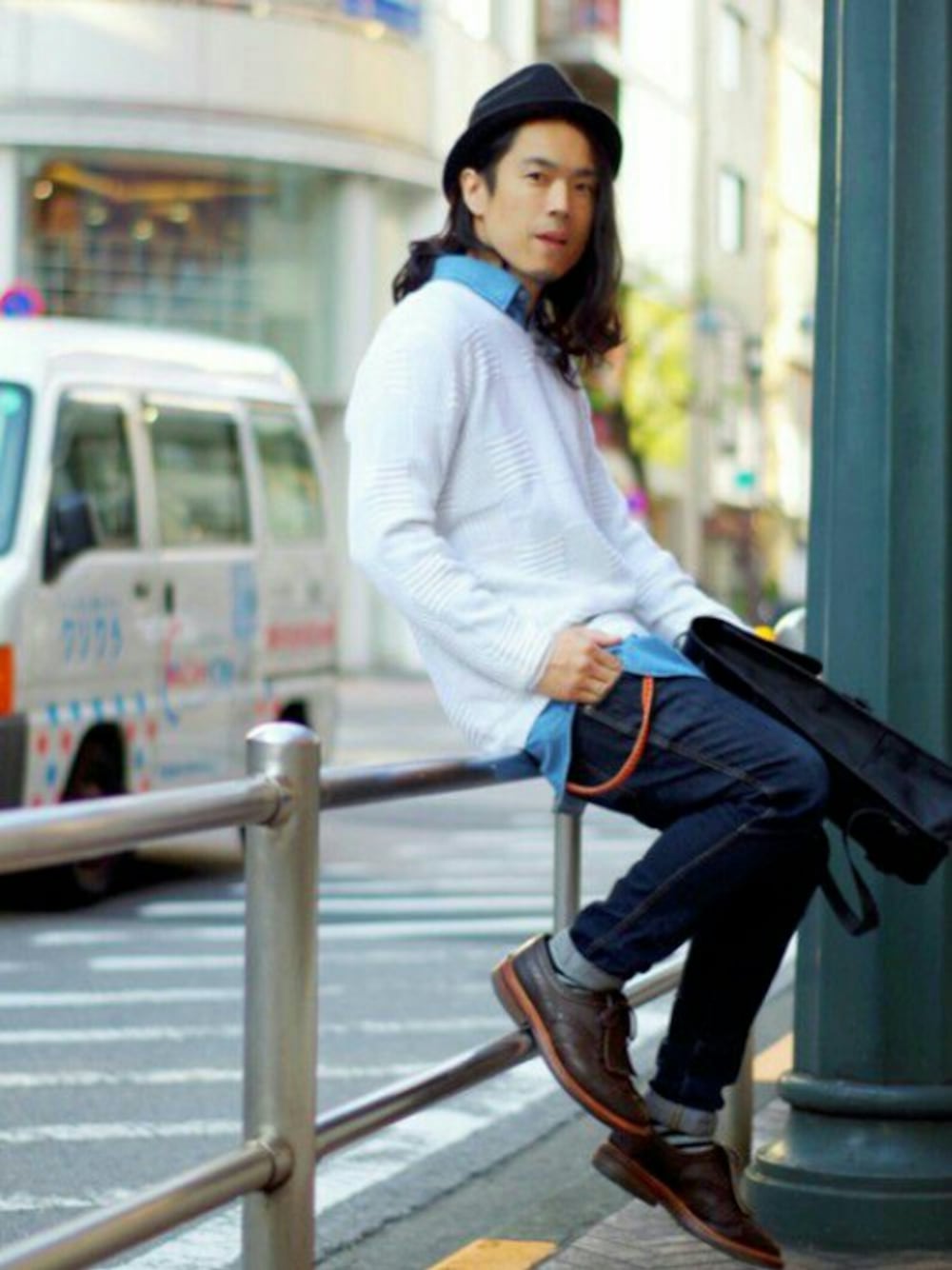 タケダヒロタカ★★★のニット/セーター「BLOCK PATTERN V-NECK KNIT / ブロックパターンVニット」を使ったコーディネート