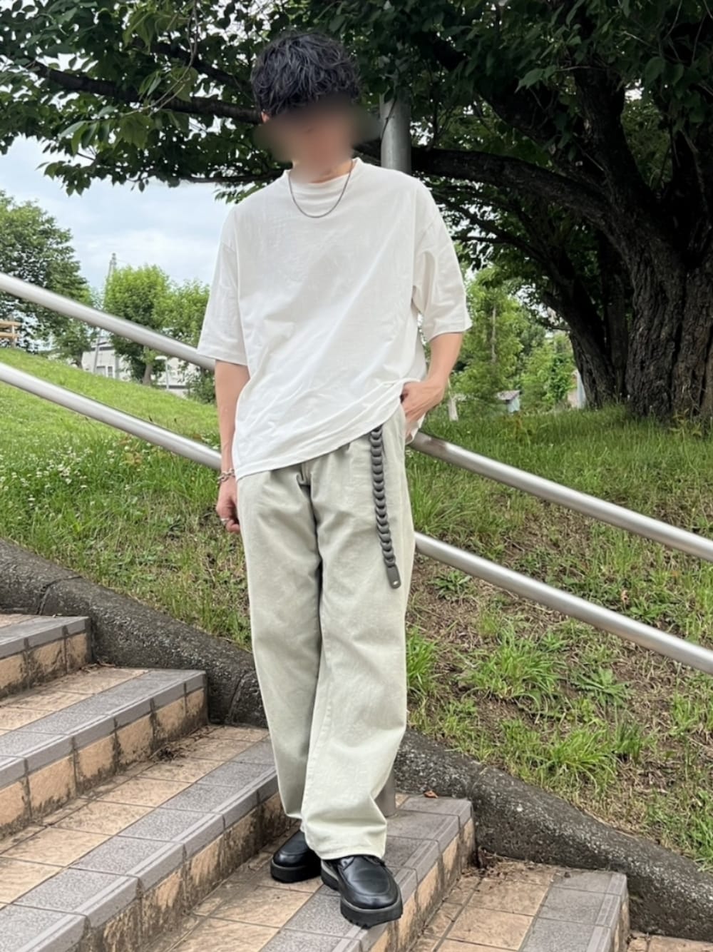 見ていただいている皆様、ありがとうございます 夏には王道白Tコーデ。ライトグリーンのデニムで淡色に。