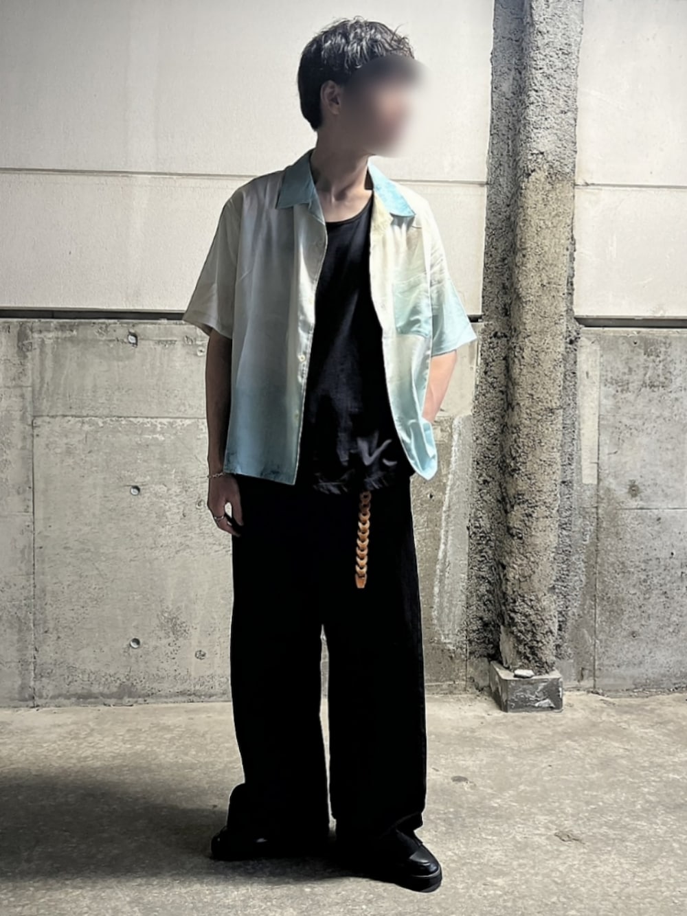 見ていただいてる皆様、ありがとうございます 夏でも暗くなるコーデにアクセントのあるライム色のグラデシャツで