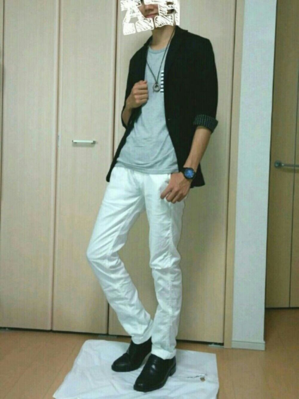 こんばんわ!HITUKIです♪ 部活やら課題やらでこんな時間の投稿となってしまいました( ;∀;) 今回のコーディネートは前回と逆に、大人っぽい雰囲気を表現してみました。 ポイントはなんといってもシューズ!いわゆるローファーですね😁😁 このローファー自分が学校に履いていってるものなのですが、私服にも全然合っちゃうんですよね笑 白のパンツと合わせることで、相手に清潔感を与えられると思います。 ジャケットが黒だと、白黒でどちらかの色が浮くことがあるのですが、そこは中間色であるグレーのシャツを中にきて、自然な印象にしています。またこのシャツが胸元にミッキーがいたりとかわいいんですよ笑 前回多くの方にいいねを押していただけました、本当にありがとうございました!今回もよろしければいいねを、そしてフォローの方もよければお願いしますm(_ _)m