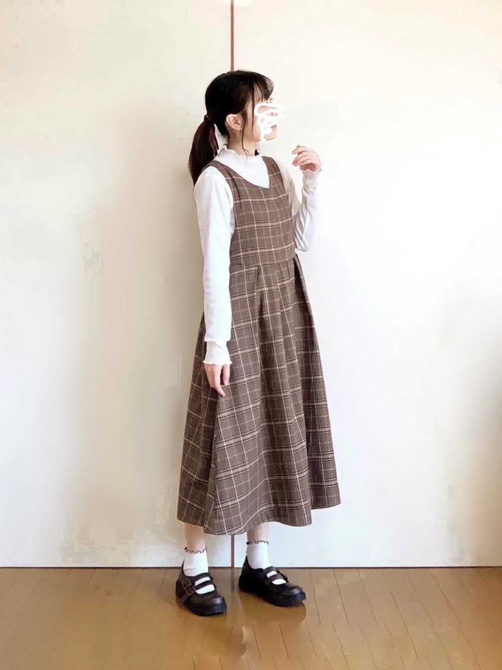 ひつじのジャンパースカート「ウエストタックジャンスカ」を使ったコーディネート