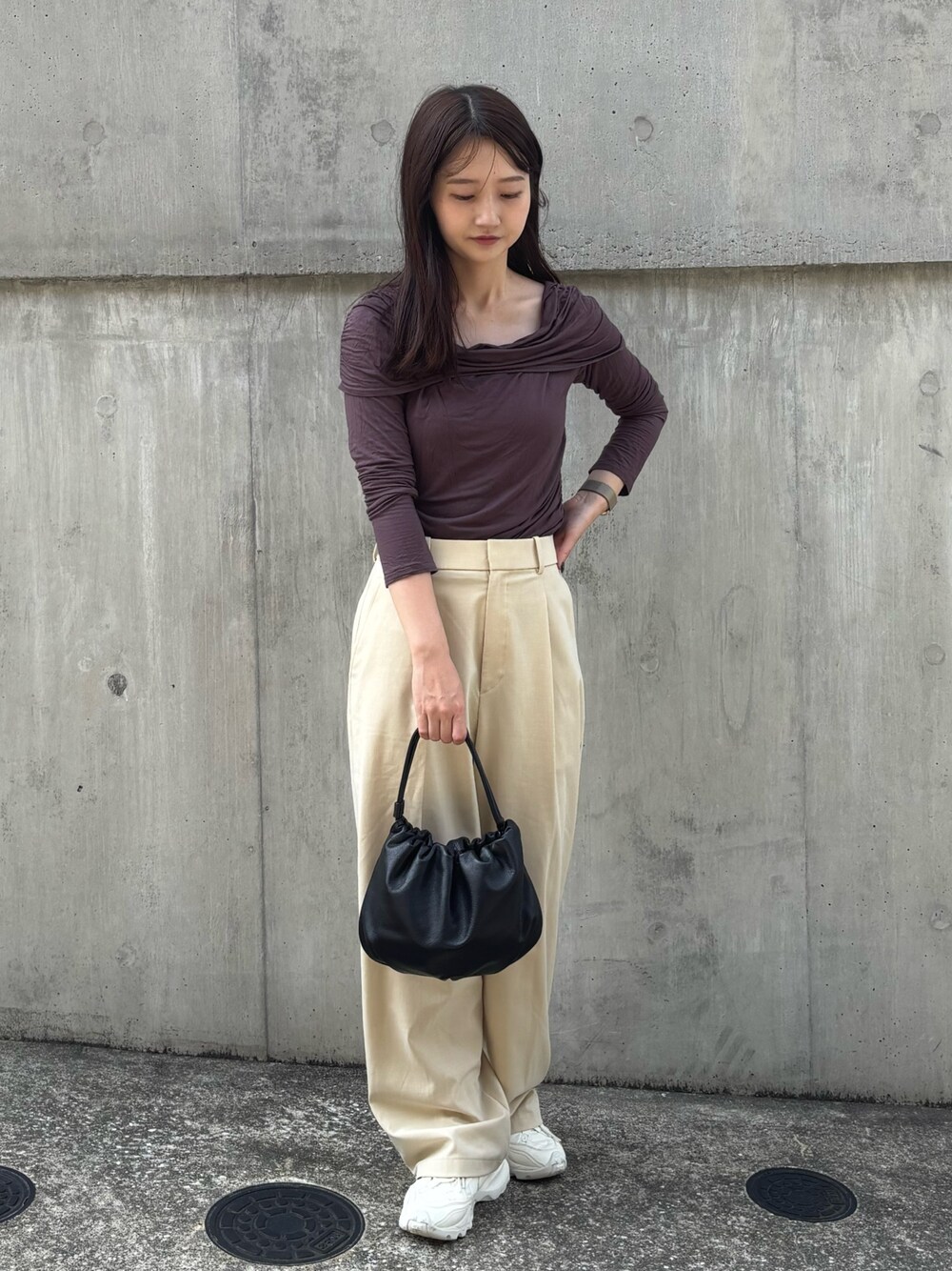 hiyori(russet)のショルダーバッグ「レザー巾着4WAYショルダーバッグ」を使ったコーディネート
