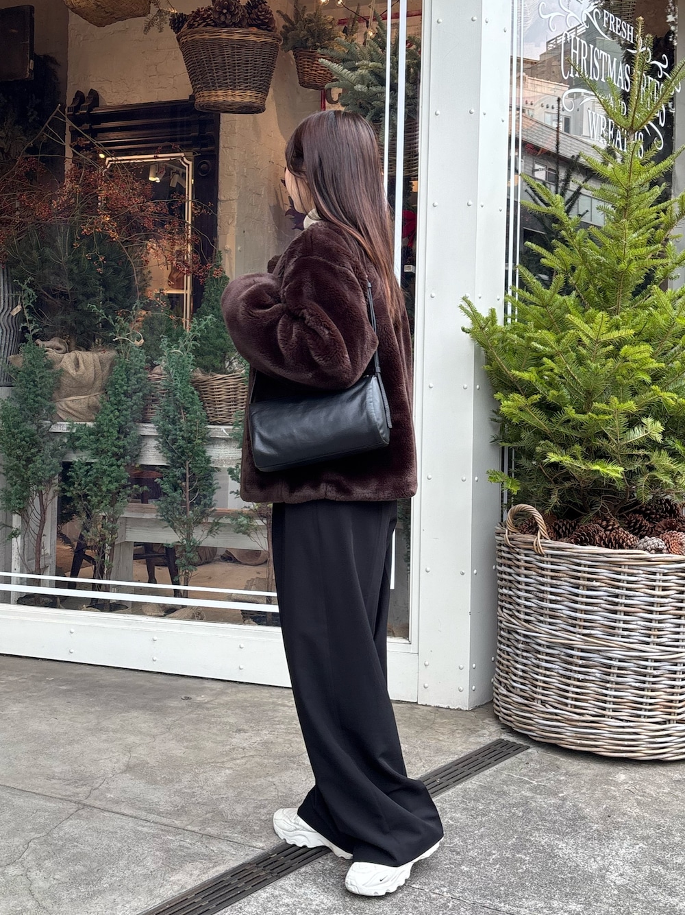 ありそうでなかったショルダーバッグ。 シンプルだけどフォルムが特徴的なので コーデのポイントになります♪ ファーコートとの合わせも大人っぽくなりおすすめです!