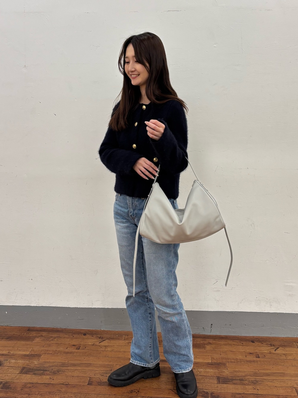 いままでレザーバッグになかったライトグレーが登場! サイドのフォルムにこだわったデザインがポイントです。 大きくても真ん中をくたっとさせると おしゃれにお持ちいただけます◎