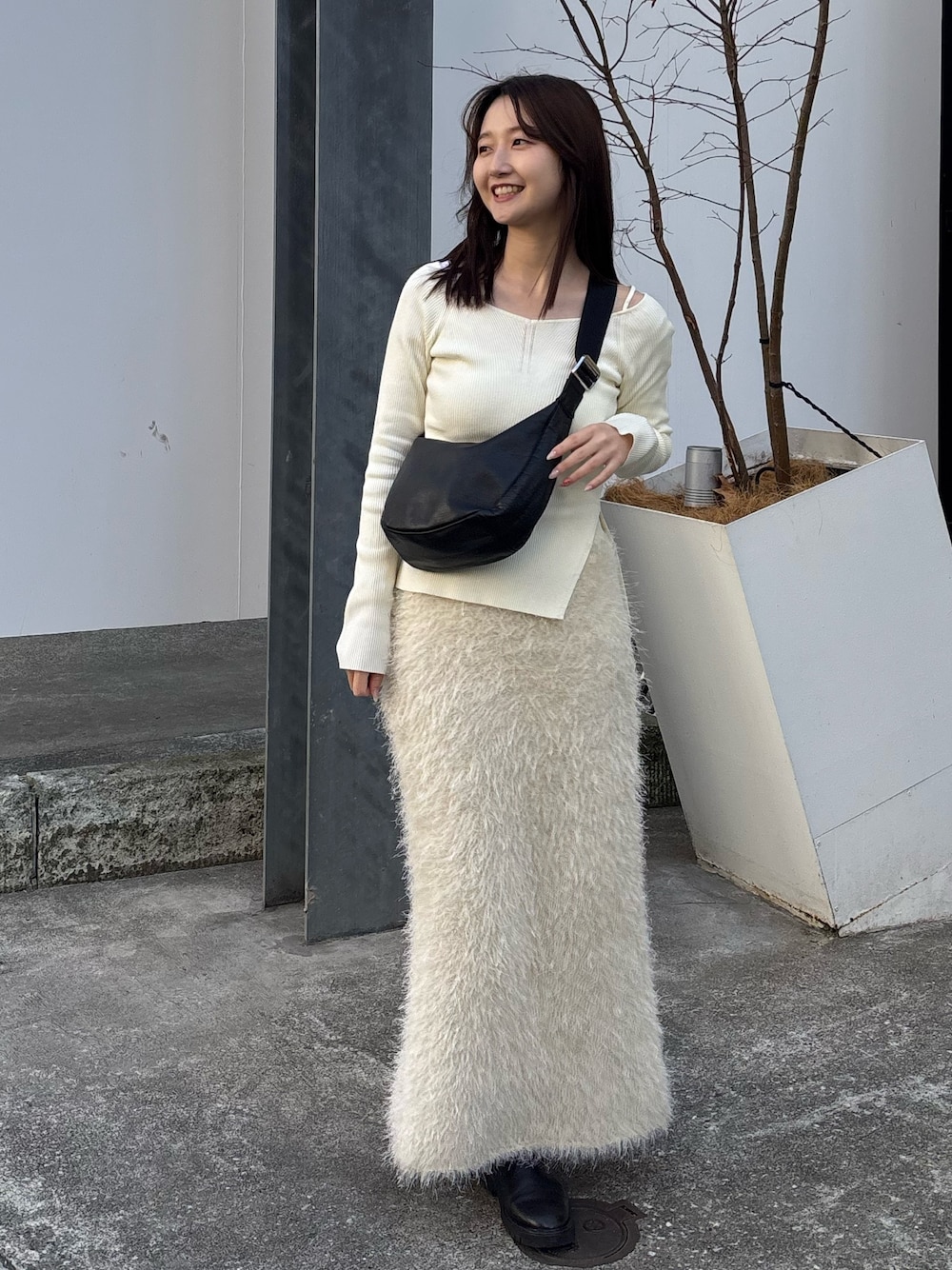 きれいめコーデが多い私でも合わせられたラウンドショルダーバッグ。 きれいめコーデが多い方はレザー素材と合わせるとまとまるのでおすすめです!