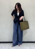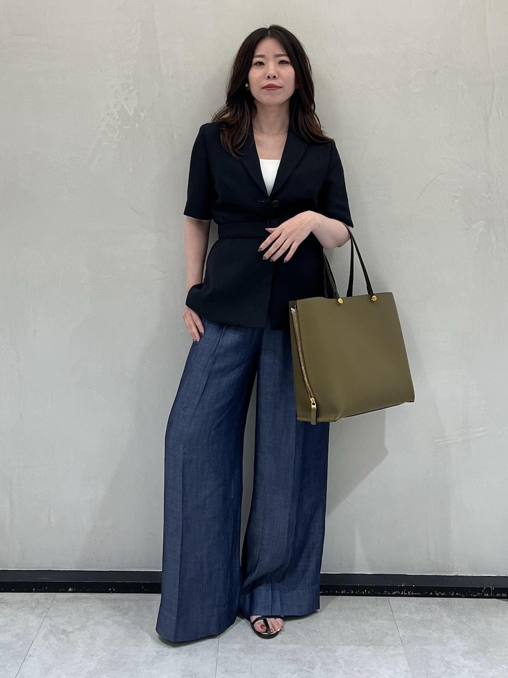 身長153㎝、骨格ウェーブ、イエベ秋です。 半袖はちょっとなぁ‥とおもっていた方に着てみてほしい! 美シルエットでシワにもなりにくく、 ペプラムラインが着るだけで低身長女子でも自然とスタイルアップできちゃうジャケット。 ベルトを革のベルトにチェンジしたり、ベルト無しで羽織っても洒落てお仕事以外にも◎ ワイドパンツと合わせてもウエスト位置が高いので 脚長効果も抜群でした♡ デニムっぽいけどデニムではない、 柔らかく楽ちんなのに重くなりすぎないワイドパンツと合わせてクールでも抜けのあるジャケットスタイリングに。