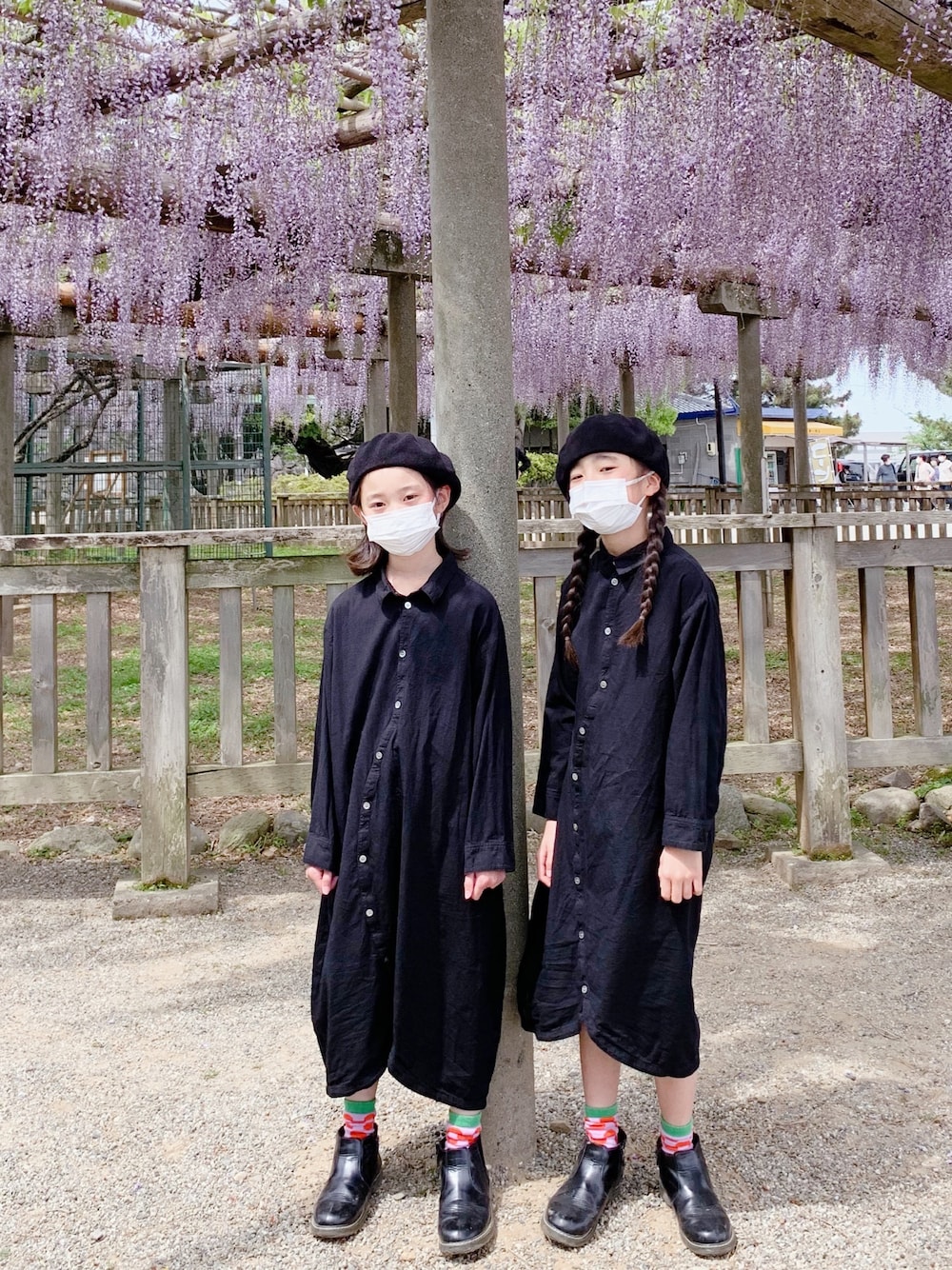 ひよ。こは。のシャツワンピース「コクーンシャツワンピース【親子でおそろいリンクコーデ】」を使ったコーディネート