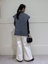 ⭐️ウォームツイルストレッチワイドパンツ Mサイズ着用 微起毛のあったか素材パンツ。 綺麗めにもカジュアルにも合わせやすい素材感とシルエットです◎ ⭐️起毛金ボタンベスト フリーサイズ着用 コーディネートの幅が広がるニットベスト。 シャツや薄手ニット、ワンピースなど様々な合わせで着用いただけます♪