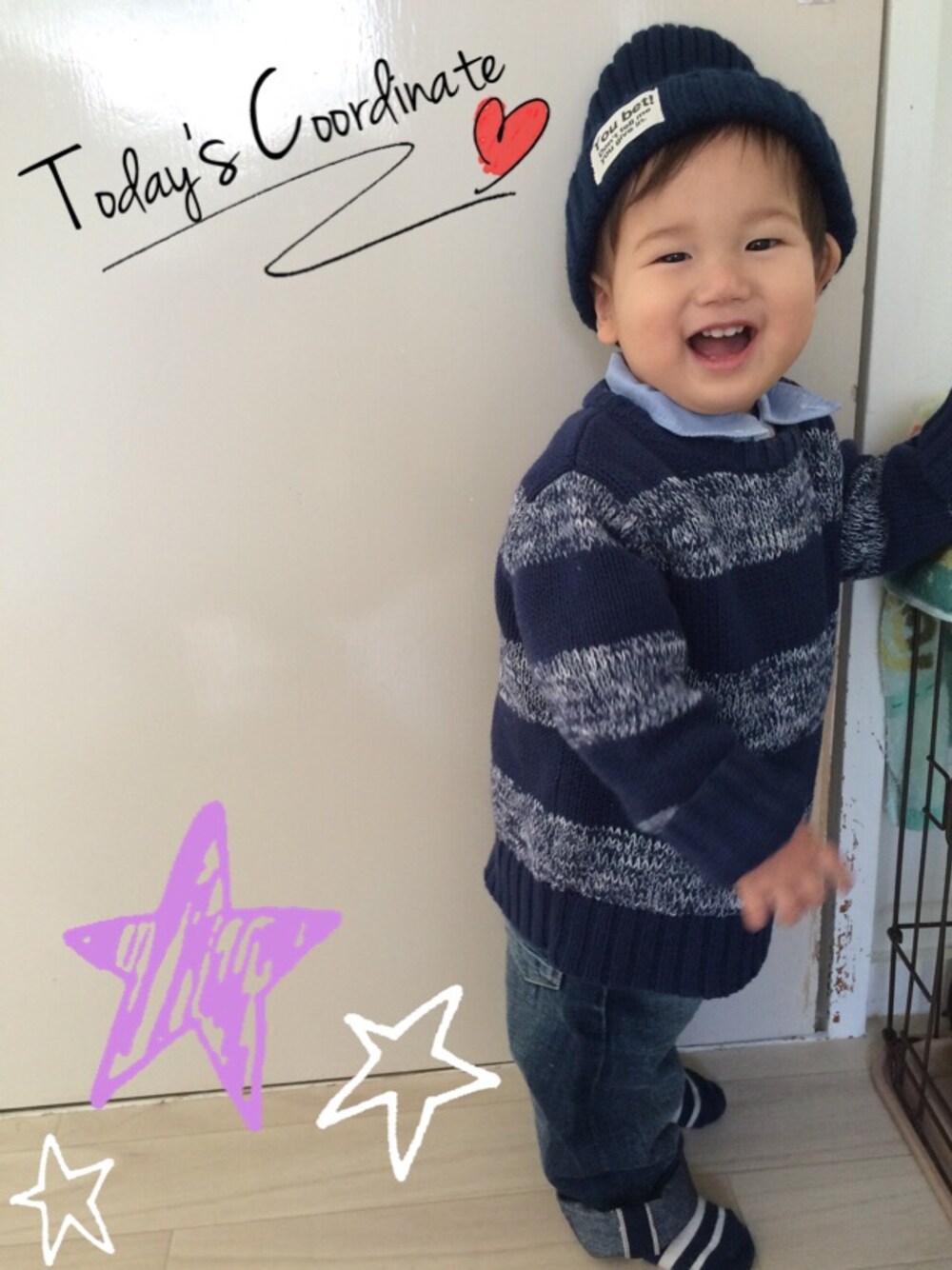 先のことを考えて90センチを買っているが やはり彼には少し大きい笑 セーターがワンピースになってます_(:3 」∠)_
