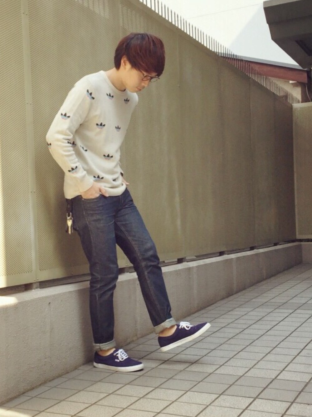 小山 英機のニット/セーター「オリジナルス トレフォイルニット[AOP TREF KNIT]」を使ったコーディネート