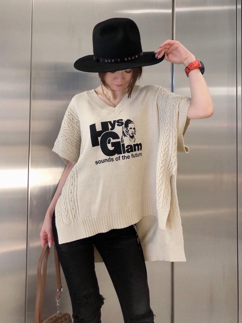 新作のGLAM SOUNDS ベストです。 オーバーサイズのベストは、シャツやロングスリーブT-SHに合わせたり、ワンピースの上に重ねたり、1枚でノースリーブニットとして、色々な着方でオールシーズン活躍するアイテムです。