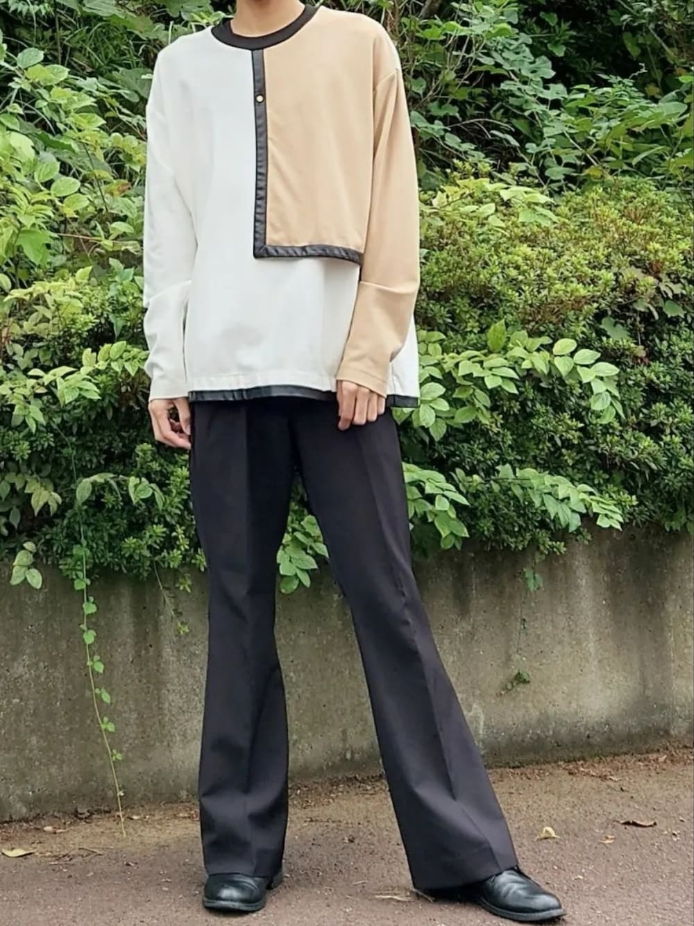 Hiro斗のTシャツ/カットソー「レザートリミングレイヤープルオーバー」を使ったコーディネート