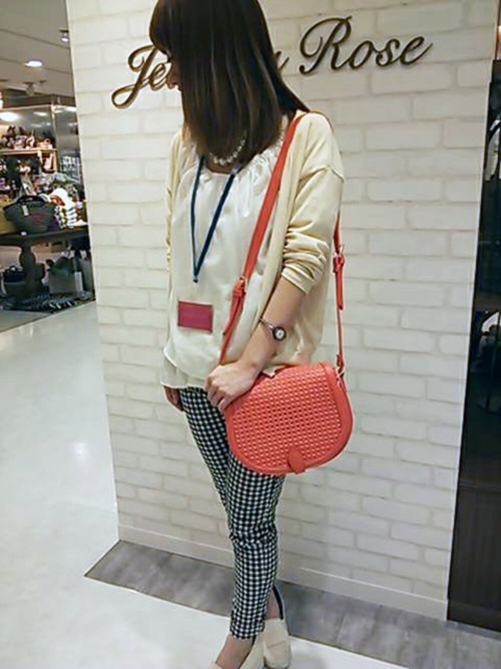 【アイテム】39458-11/パンチングショルダー 【コメント】アクセントカラーとして差し色にピッタリ!!! シンプルなお洋服に合わせるだけでオシャレ女子になれますよ!